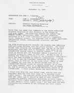 This memo was written by two Reagan White House lawyers, Deborah K. Owen and John G. Roberts -- who is now chief justice of the U.S. Supreme Court. It responds to some briefing points on AIDS that were put together in advance of a presidential press conference. Anticipating questions about allowing children with AIDS to attend public schools, the original briefing points advised sympathy for parents and children and emphasized that there was no danger from casual or routine contact. However, Roberts wrote, "I would not like to see the President reassuring the public on this point, only to find out he was wrong later. There is much to commend the view that we should assume AIDS can be transmitted through casual or routine contact, as is true with many viruses, until it is demonstrated that it cannot be, and no scientist has said AIDS definitively cannot be so transmitted." Reagan was asked the question at his press conference and he responded: "I'm glad I'm not faced with that problem today and I can well understand the plight of the parents and how they feel about it. … And yet medicine has not come forth unequivocally and said 'This we know for a fact, that it is safe.' And until they do I think we have to do the best we can with this problem. I can understand both sides of it." The next day the head of the Centers for Disease Control and the top scientist at the National Institutes of Health called a press conference to emphasize that AIDS is a blood-borne sexually transmitted disease, which cannot be spread by casual contact.