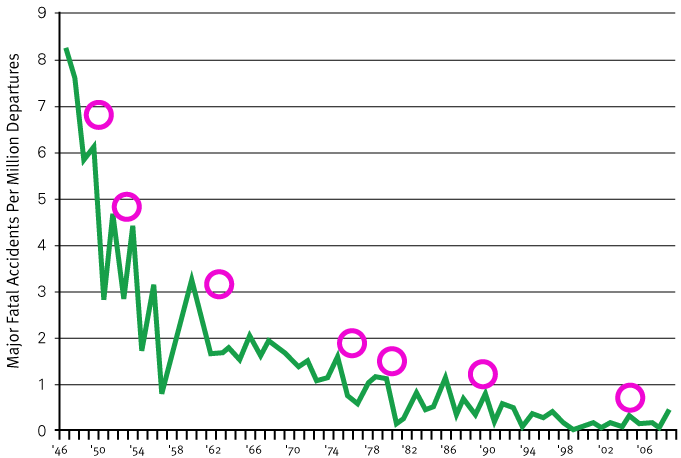 Breakthroughs in Major Accident Rates Since 1946 (Hull Losses or Multiple Fatalities)