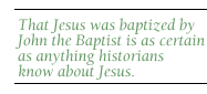 That Jesus was baptized by John the Baptist is as certain as anything historians know about Jesus. It is somewhat clouded, however, in our present texts by the fact that later followers of Jesus thought it was not appropriate that the Messiah should be baptized, and apparently inferior, therefore, to John the Baptist. Jesus was baptized by John, and therefore he had to accept John's message, at least when he was being baptized, whether he changes is another question, later. But, he accepts it when he was being baptized, and John's message is, "God, very soon, imminently, any moment, is going to descend to eradicate the evil of this world in a sort of an apocalyptic consummation...."